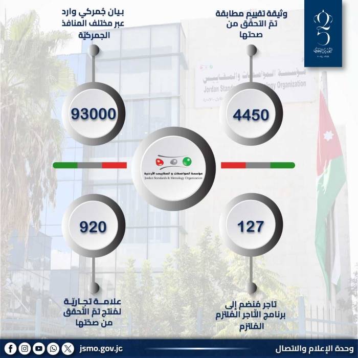 أعلنت مؤسسة المواصفات والمقاييس، اليوم الثلاثاء، أنها تعاملت مع 93 ألف