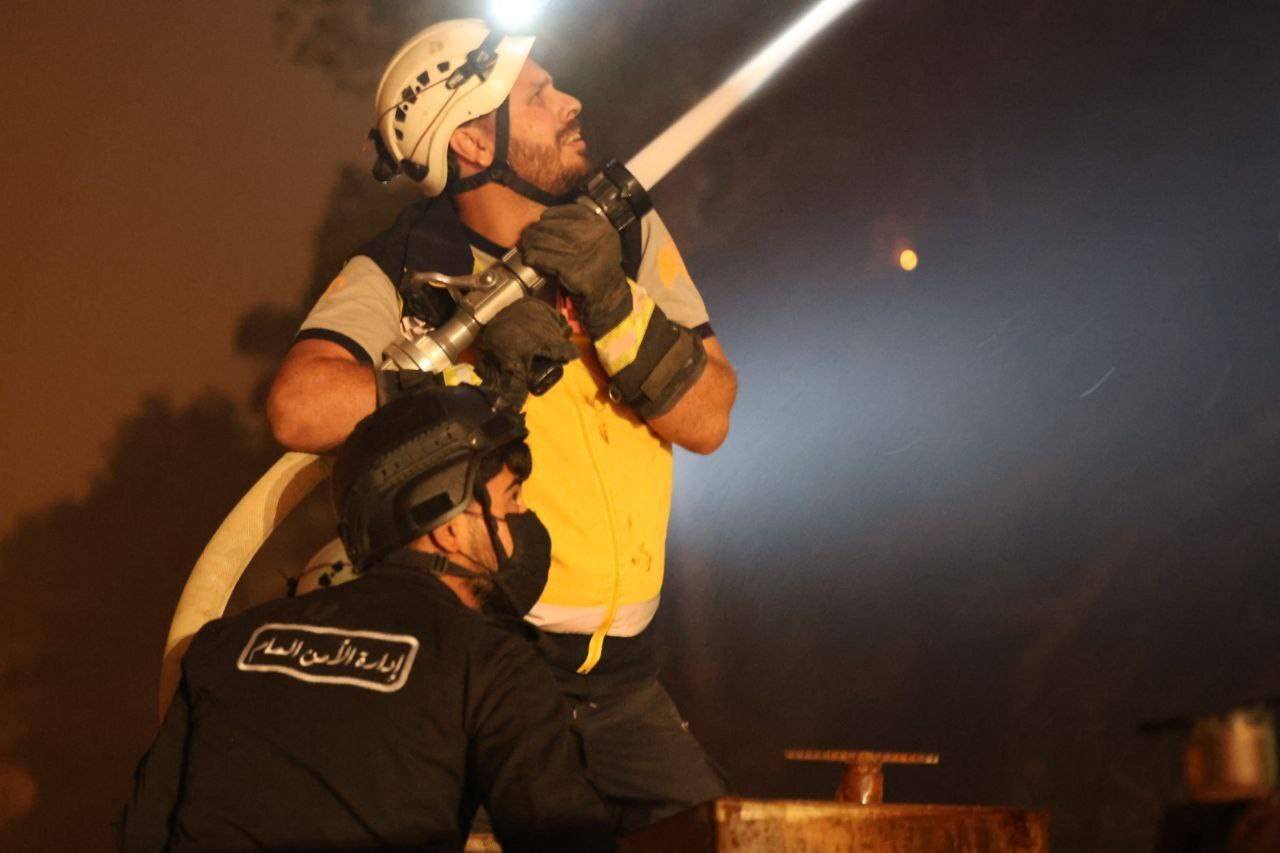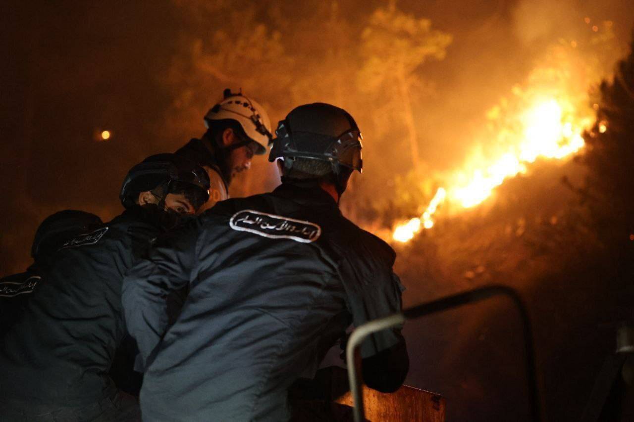 محاولات إخماد الحرائق المستمرة بريف اللاذقية السورية