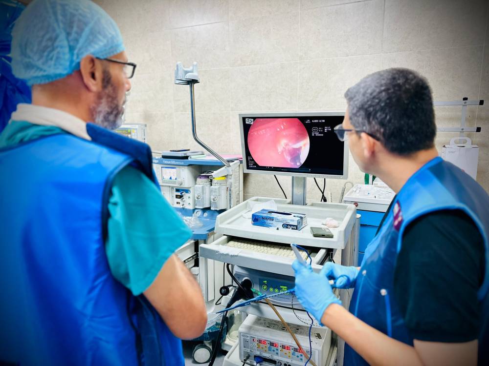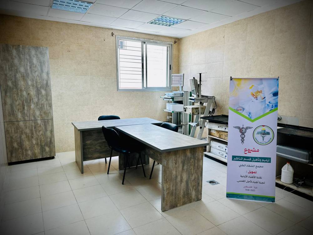 لجنة أطباء من اجل القدس في نقابة الاطباء الأردنية تجهز قسم التنظير في مجمع الشفاء الطبي - غزة علىفقة