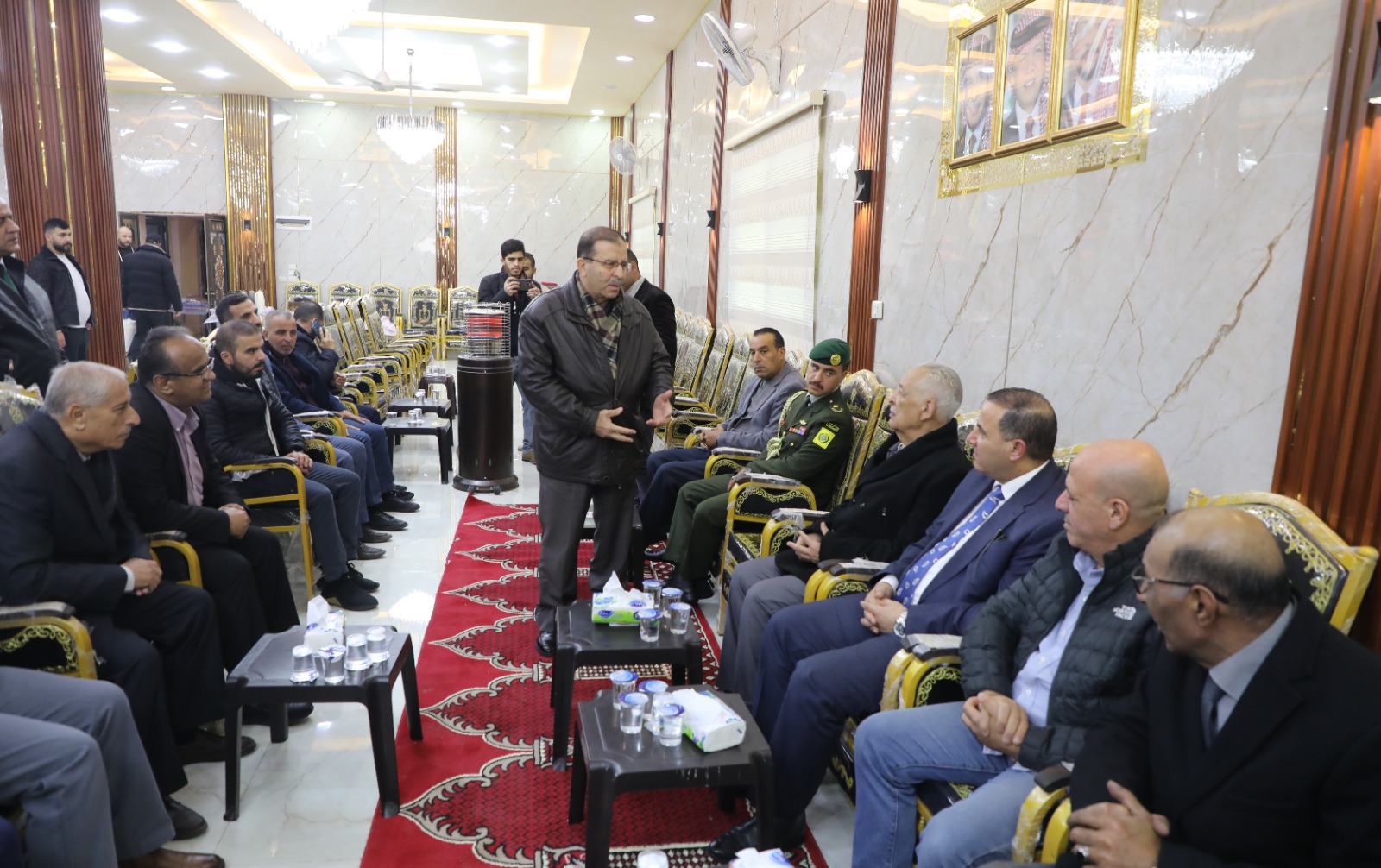 عمان -البلقاء- مندوبا عن جلالة الملك عبدالله الثاني وسمو الأمير الحسين بن عبدالله الثاني، ولي العهد، قدّم رئيس الديوان الملكي الهاشمي يوسف حسن العيسوي، اليوم السبت، واجب العزاء إلى عشائر العجارمة والعمايرة والرحامنة والنجار وأبو حسان، ناقلا إليهم تعازي ومواساة جلالة الملك وسمو ولي العهد.