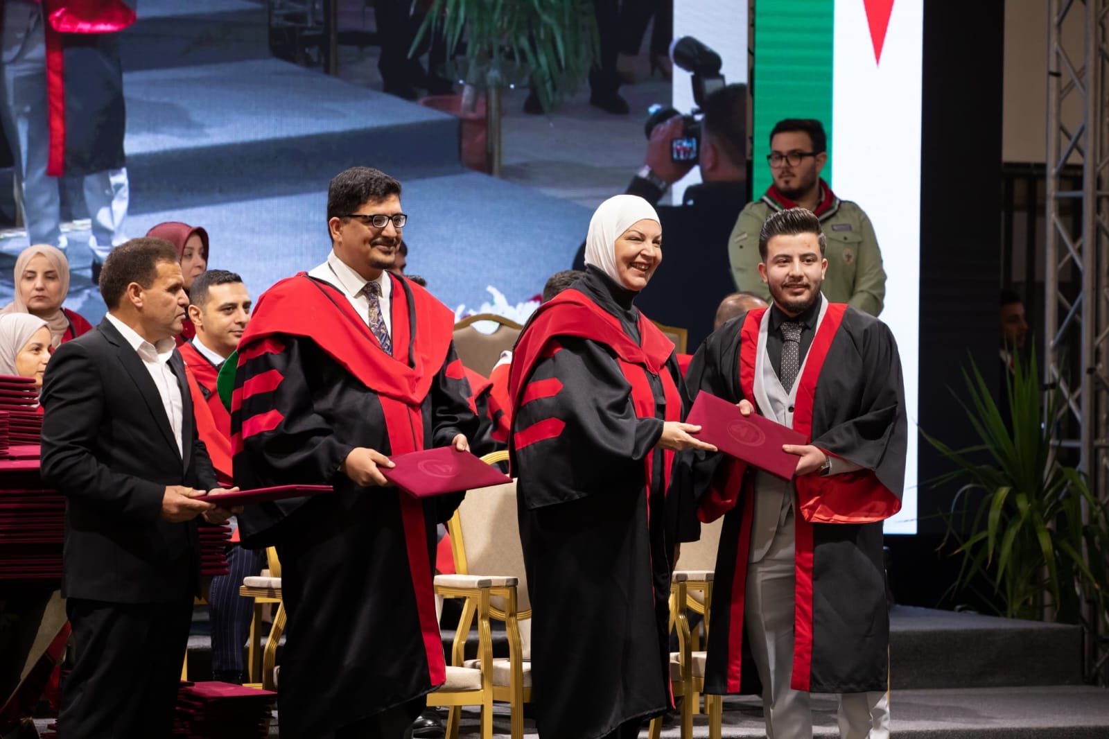 وشمل حفل التخريج كليات الأعمال، والآداب، وكلية الأمير الحسن بن طلال للموارد الطبيعية والبيئة، حيث قام عمداء الكليات؛ الأستاذة الدكتورة وعد النسور عميدة كلية الأعمال، والأستاذ الدكتور يحيى العلي عميد كلية الآداب، والدكتور سلمان الكوفحي عميد كلية الموارد الطبيعية والبيئة، بتسليم الشهادات للخريجين.