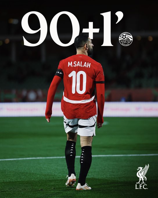 وعلق نادي ليفربول عبر صفحته الرسمية على موقع التواصل الاجتماعي على صورة لمحمد صلاح بقميص منتخب مصر وكتب: "الحسم بأقدام الملك".
