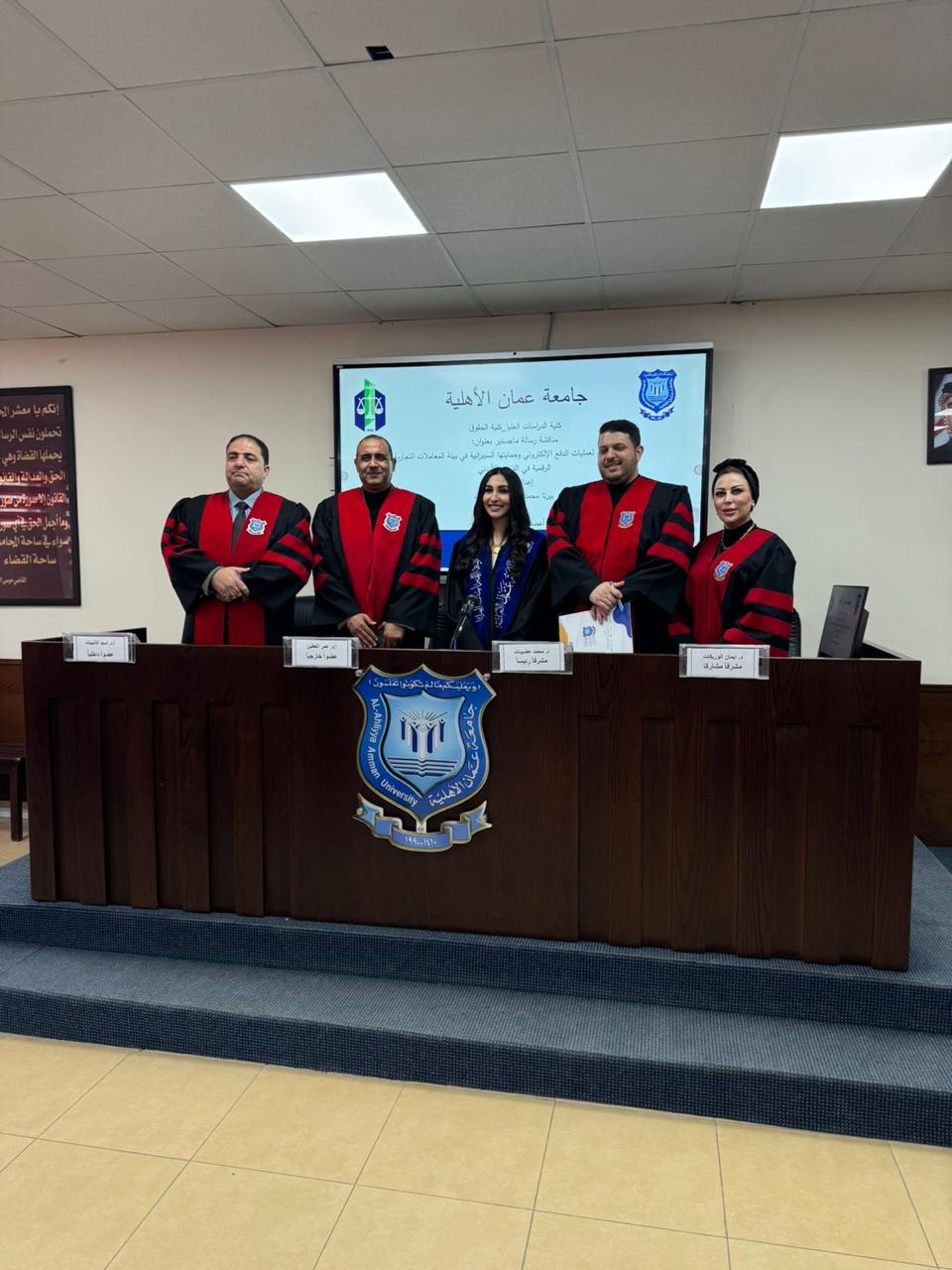 حيث أشرف على الرسالة المشرف الرئيسي الدكتور محمد عضيبات – المشرف المشارك الدكتورة ايمان الوريكات – العضو الداخلي الاستاذ الدكتور اسيد ذنيبات – العضو الخارجي الاستاذ الدكتور عمر العطين