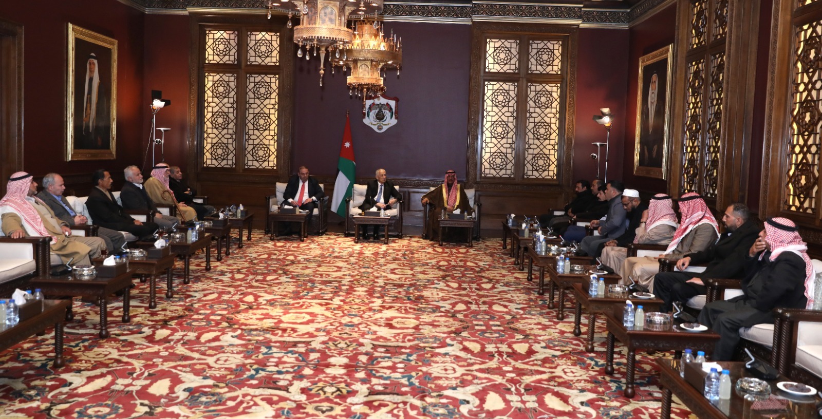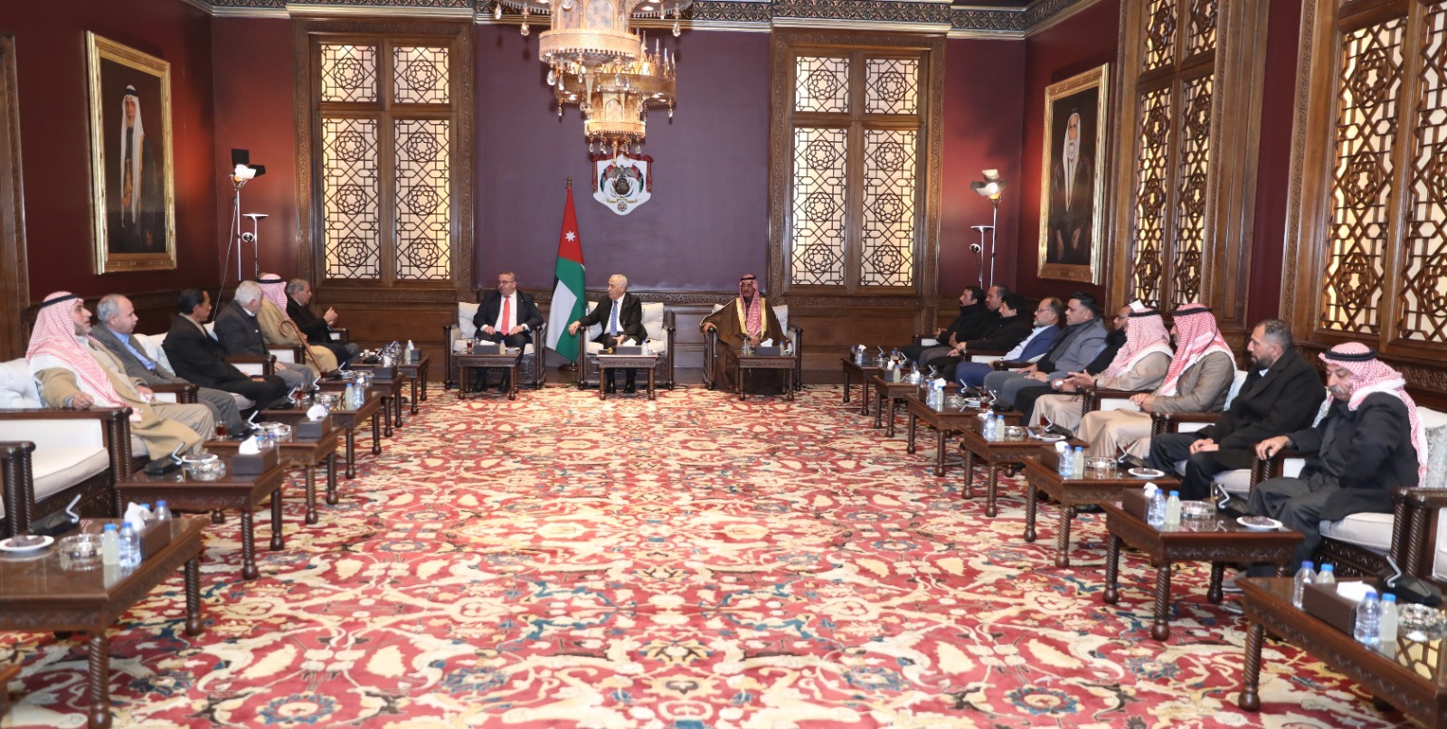 جاء ذلك خلال لقائه، اليوم الأحد، في الديوان الملكي الهاشمي، وفدا من أبناء منطقة البويضة في لواء الرمثا، حيث تناول العيسوي خلال اللقاء أسس التجربة الأردنية ودور القيادة الهاشمية في صون الأمن الوطني وتعزيز وحدة الصف الداخلي.