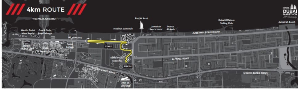 وأشار إلى أن الماراثون سيمنح آلاف العدائين فرصة جديدة لتسجيل أوقات قياسية، عبر مسار واسع يشمل شارع شاطئ جميرا وشارع الملك سلمان بن عبدالعزيز آل سعود، لافتاً إلى أن العدائين سيلاحظون عدداً من العناصر الجديدة، أبرزها خط النهاية في ساحة العرض بأكاديمية شرطة دبي.