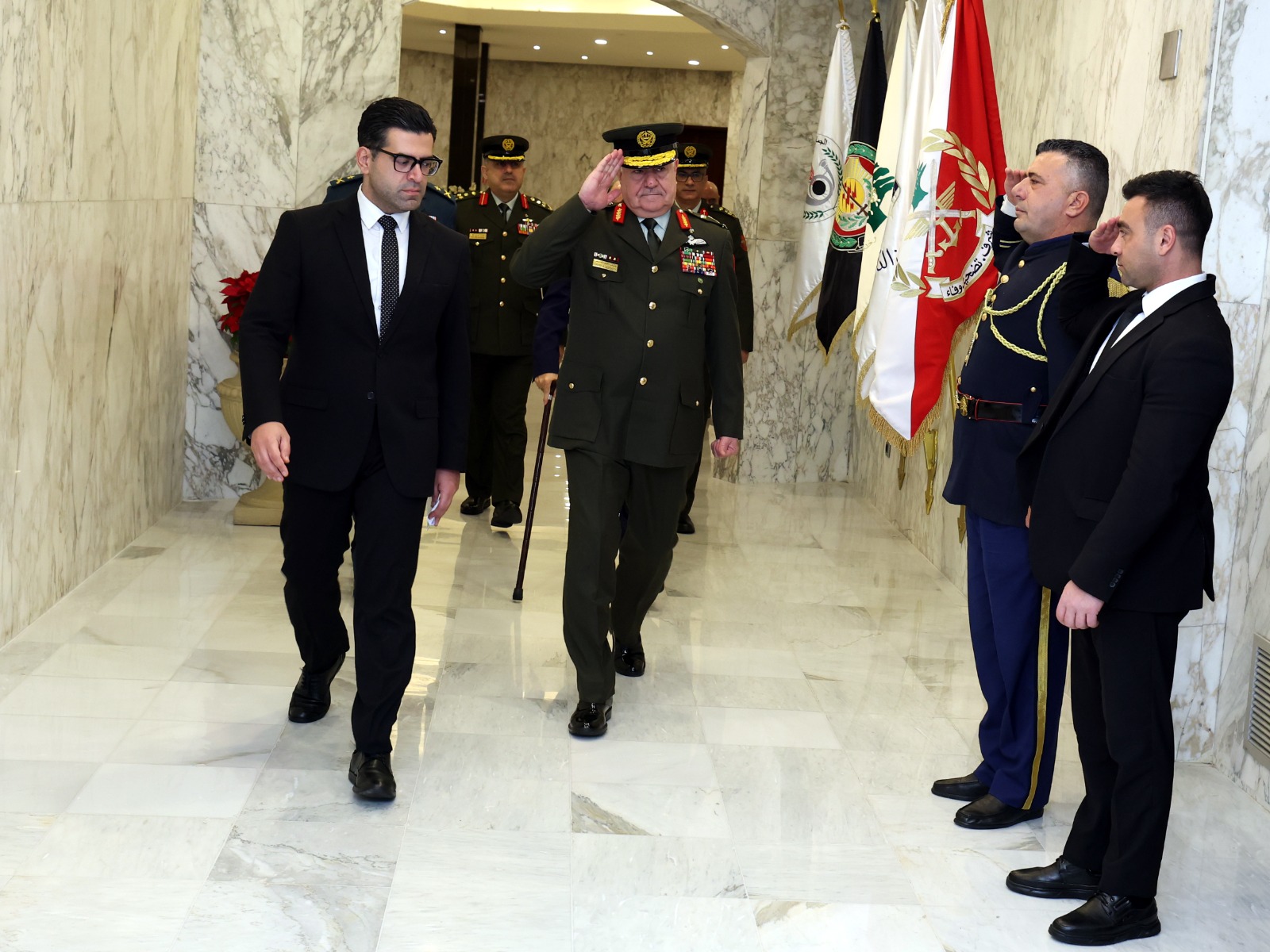 وجرى للواء الركن الحنيطي مراسم استقبال عسكرية، حيث استعرض حرس الشرف الذي اصطف لتحيته.