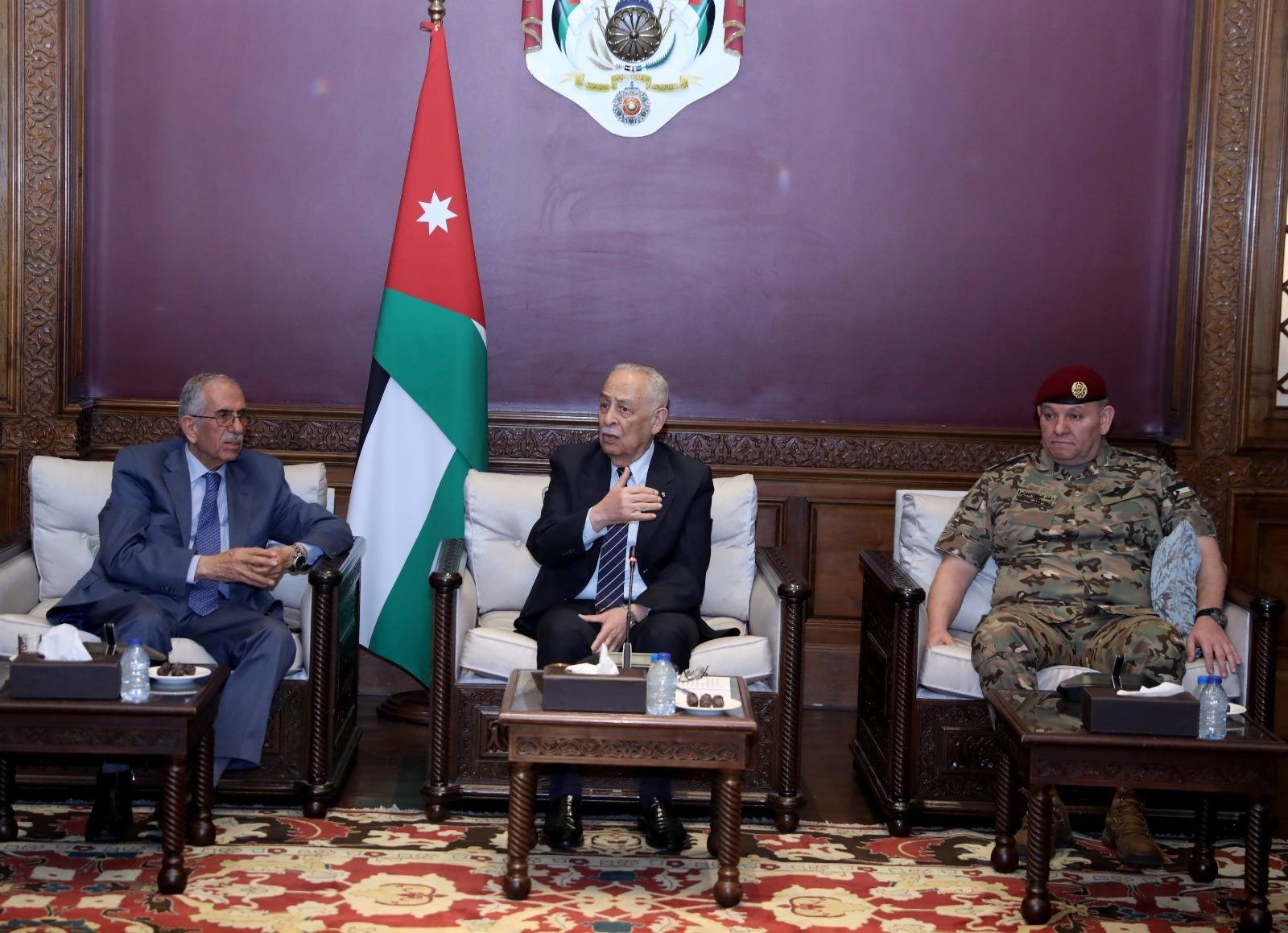 عمان - التقى رئيس الديوان الملكي الهاشمي يوسف حسن العيسوي، اليوم الأحد، وفدًا من أعضاء اللجنة الوطنية للعسكريين السابقين، في الديوان الملكي الهاشمي، بحضور العميد الركن رعد العمايرة مدير المكتب العسكري الخاص لجلالة الملك.