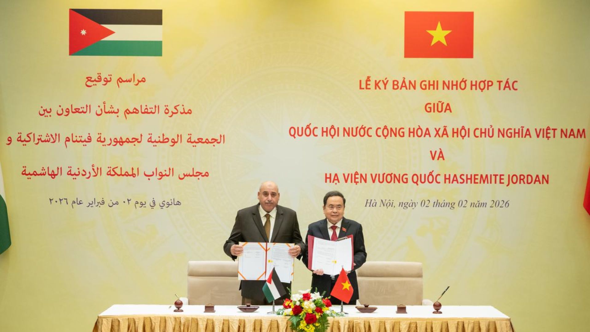 وعلى هامش جلسة المباحثات، وقع الجانبان مذكرة تفاهم بشأن التعاون البرلماني المشترك، والتي تهدف لتعزيز علاقات التعاون الثنائي القائمة بين الأردن وفيتنام والحرص على تطويرها في مختلف المجالات.https://petra.gov.jo/upload/Files/%D9%82%D8%A7%D9%84%D8%A8%20%D8%B5%D9%88%D8%B1%20%D8%A7%D9%84%D9%85%D9%88%D9%82%D8%B9%20%D8%A7%D9%84%D8%A5%D9%84%D9%83%D8%AA%D8%B1%D9%88%D9%86%D9%8A%20-%202026-02-03T093431.594.jpg