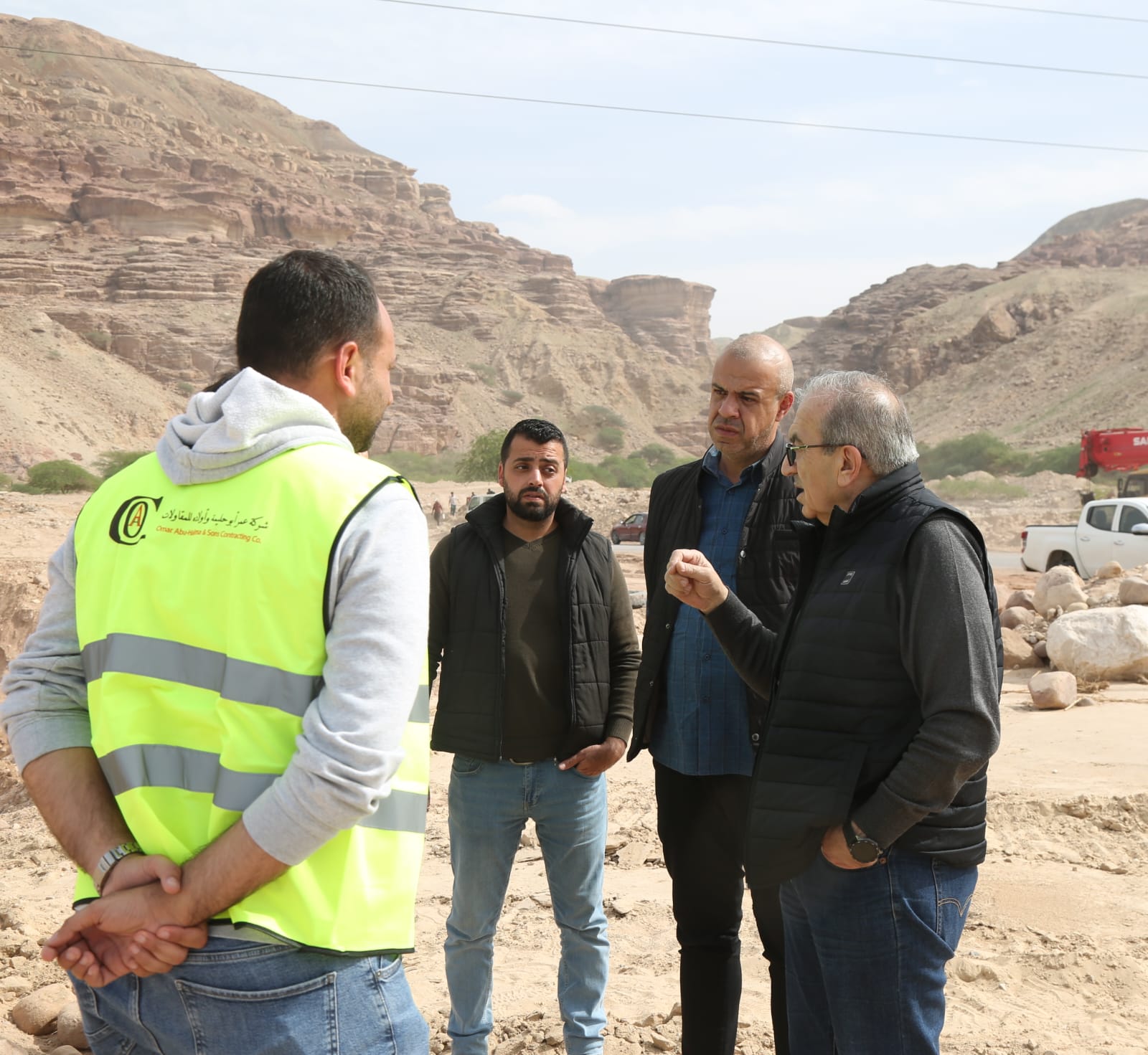 حيث اطلع على تقدم العمل في جسور منطقة البحر الميت التي بلغت نسبة الإنجاز فيها 28%، وشملت الأعمال تنفيذ حمايات لمداخل ومخارج جسر زرقاء ماعين وتدعيم جسر الموجب وعبّارة غور المزرعة، بالإضافة إلى معالجة الانجرافات في جسر وادي شقيق باستخدام أعمال الجابيون والخرسانة وتوجيه مجرى الوادي لضمان استدامة هذه المنشآت أمام التدفقات المائية القوية.