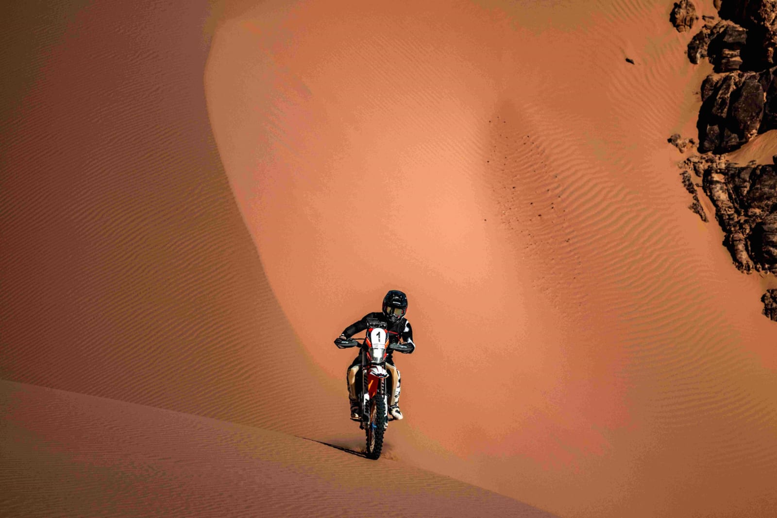 وكان الدراج الشاب البريطاني أليكس ماكينيز هو الأفضل في فئة الدراجات النارية منذ البداية على دراجته "كي تي إم"، حيث تقدم بفارق 13 دقيقة و28.3 ثانية على المتسابق السعودي عبد الحليم المغيرة في التوقف الليلي في العقبة.