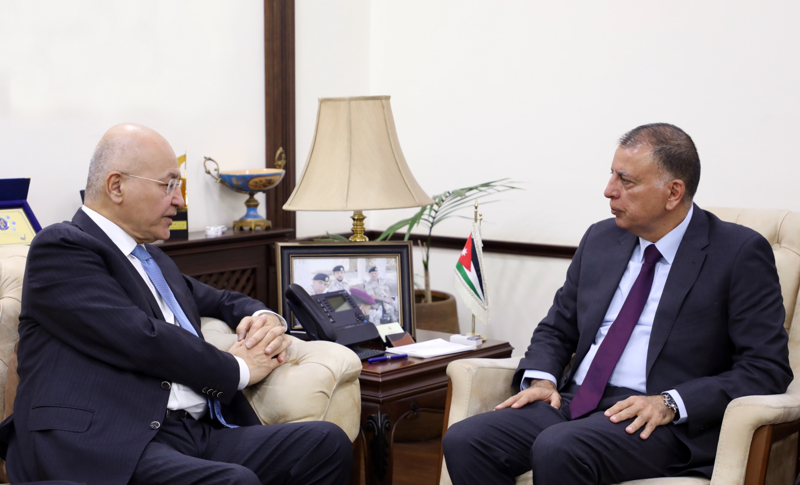 استقبل وزير الداخلية، مازن الفراية، بمكتبه اليوم، المفوض السامي للأمم المتحدة لشؤون اللاجئين برهم صالح.