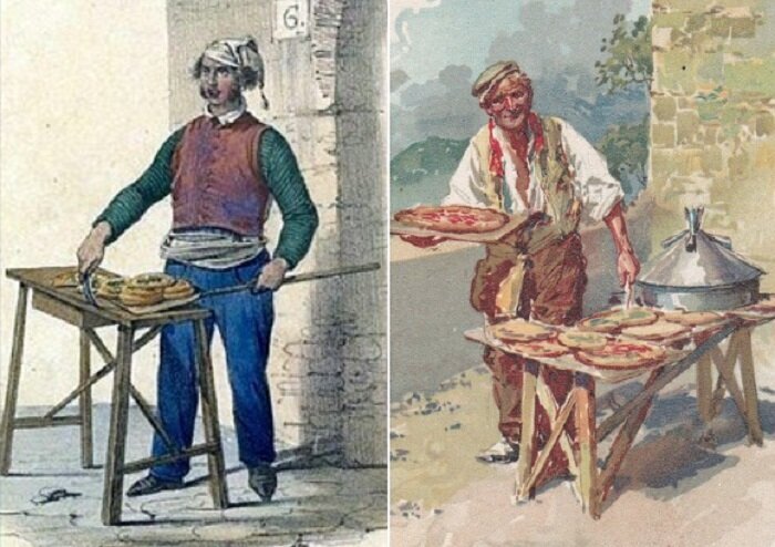 من نابولي، بدأت البيتزا رحلتها نحو العالمية. في عام 1830، افتتح أول مطعم بيتزا رسمي في نابولي تحت اسم "أنتيكا بيتزا بورت ألبا"، وكان يرتاده بشكل أساسي الفنانون والطلاب وأصحاب الدخل المحدود. بلغ من شعبية المطعم أن مالكيه ابتكروا نظام دفع فريدا سمي "بيتزا آ أوتو"، يسمح للزبائن بالدفع خلال ثمانية أيام من تناولهم الوجبة، ما يدل على الثقة والعلاقة الخاصة بين المطعم وزبائنه. انتشرت مطاعم البيتزا بسرعة في أرجاء نابولي، ثم في جميع أنحاء إيطاليا، حيث أصبحت تؤكل في كل الأوقات، من الفطور إلى العشاء.